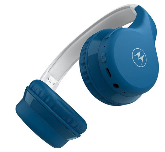 Motorola Moto JR300 Bluetooth Kids Headphones with Mic - Lightweight Over Ear Headphones for Kids, 85dB Volume Limiter, Audio Splitter for Sharing - Great for School, Travel, Gaming - Blue