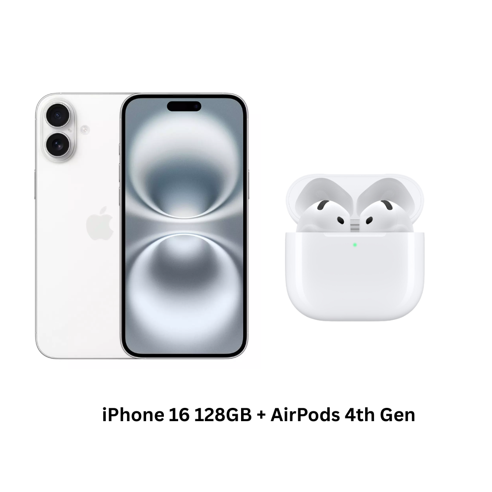 Apple iPhone 16 128GB White Bundle with AirPods 4th Gen