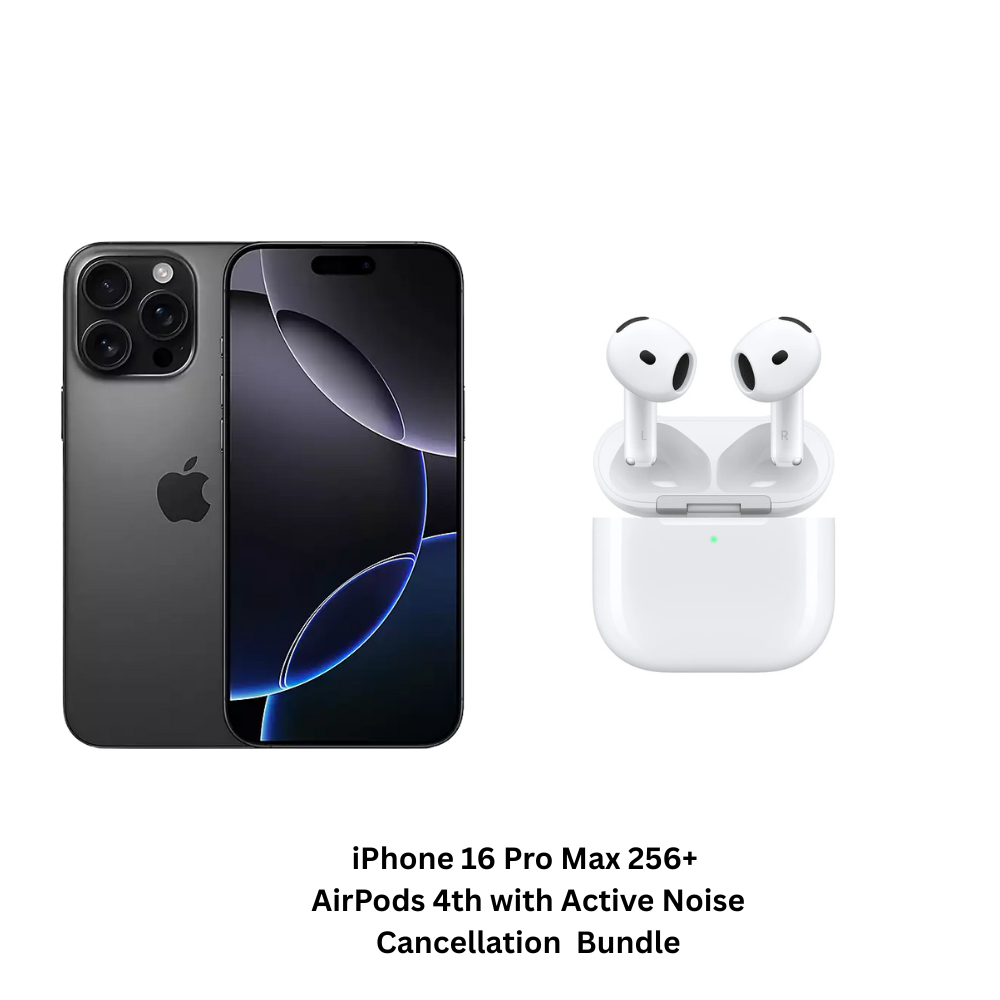 iPhone 16 Pro Max 256GB Black Titanium Bundle with AirPods 4th Gen Active Noise Cancellation