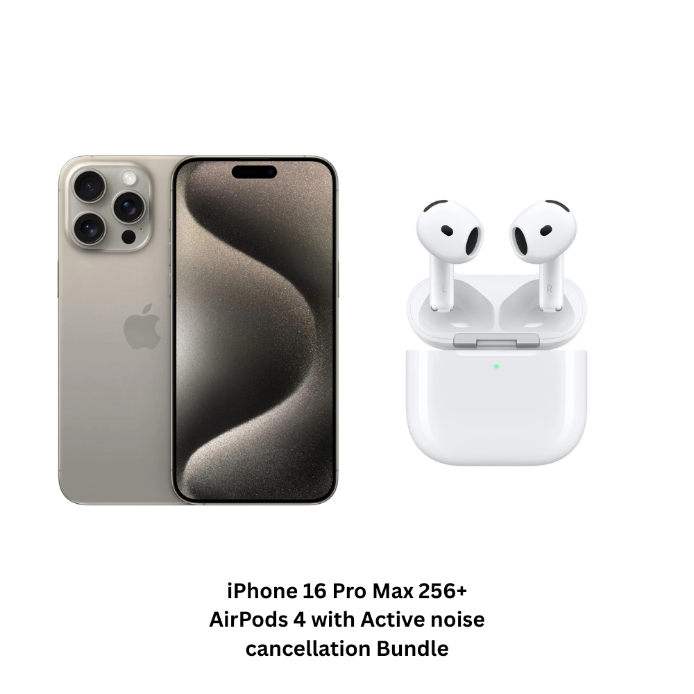 Discover the perfect combination of power, elegance, and sound with the Apple iPhone 16 Pro Max (256GB, Desert Titanium) bundled with the AirPods 4th Generation featuring Active Noise Cancellation. Engineered with the cutting-edge A18 Pro chip and a stunning Super Retina XDR display, this iPhone delivers exceptional performance and precision. Paired with AirPods 4 for immersive audio and crystal-clear calls, this bundle offers the ultimate Apple experience for work, play, and everything in between.