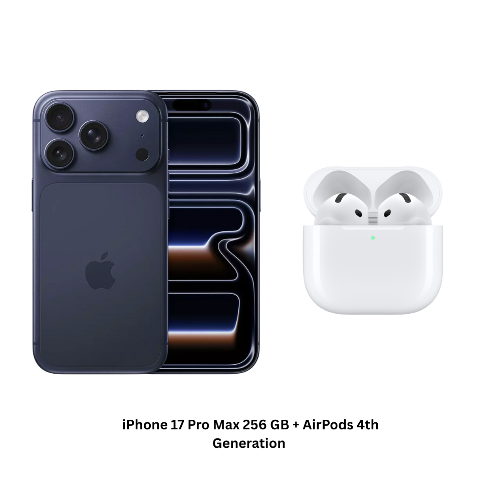 Experience next-generation power with the iPhone 17 Pro Max 256GB in Deep Blue, paired with AirPods 4th Generation for premium sound and effortless wireless connectivity. Built with Apple’s fastest chip, stunning display quality, and advanced camera system, this bundle delivers performance, style, and audio excellence in one complete package.