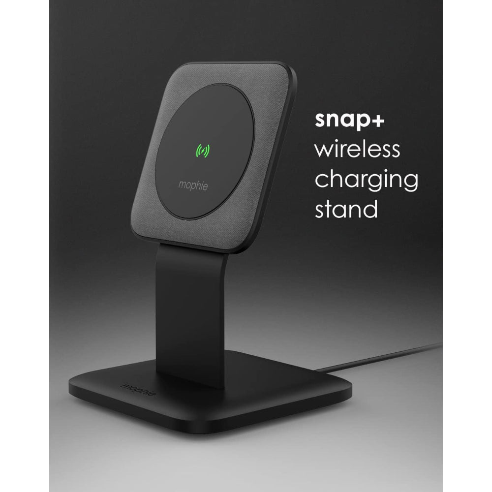 Charge your device effortlessly with the Mophie Snap+ Wireless Charging Stand. Designed for convenience, speed, and versatility, this sleek 15W charger offers powerful wireless charging in an upright stand format—perfect for your desk, nightstand, or workspace.